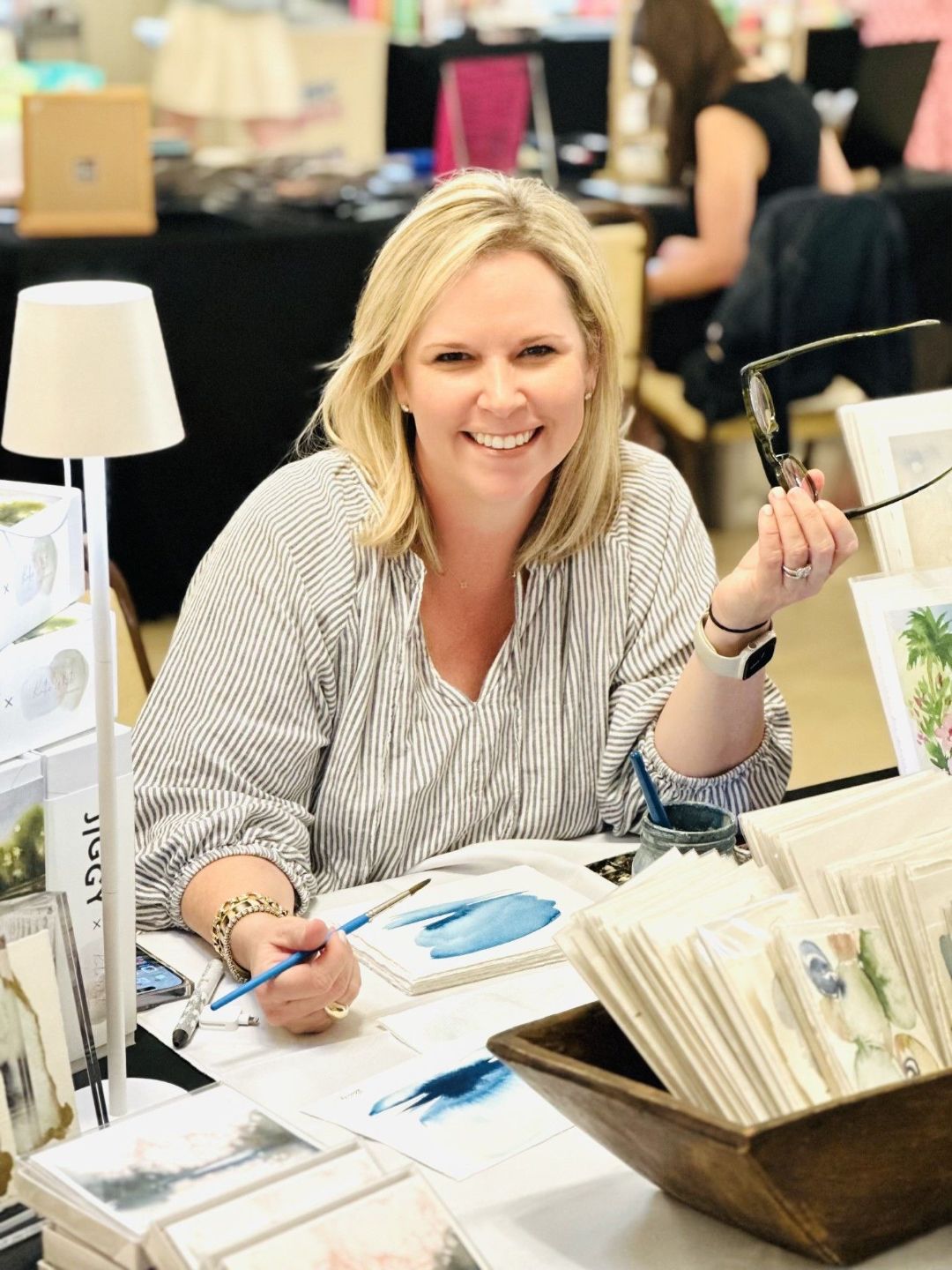 Katie’s artwork is carried by Pottery Barn, Serena and Lily, Ballard Designs, and the Palm Beach Artist Collective. When she’s not teaching or traveling for retreats, you can find her painting in her sunny Florida studio or showing work in galleries, boutiques and luxury interiors throughout the area. She also teaches meditative watercolor workshops online, in her home studio and to her 100,000 + Instagram community.